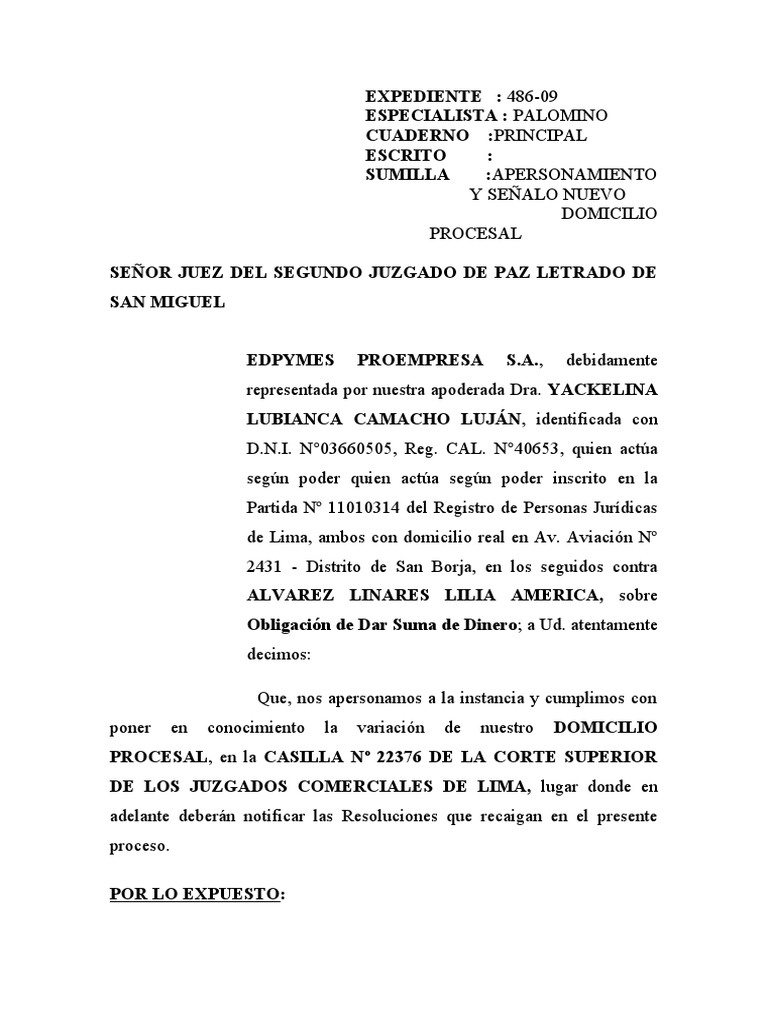 domicilio procesal y se sirva emitir la Providencia Cautelar solicitada, con