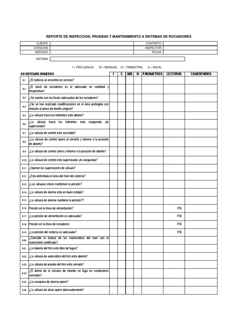 REPORTE DE INSPECCION, PRUEBAS Y MANTENIMIENTO A SISTEMAS DE ROCIADORES