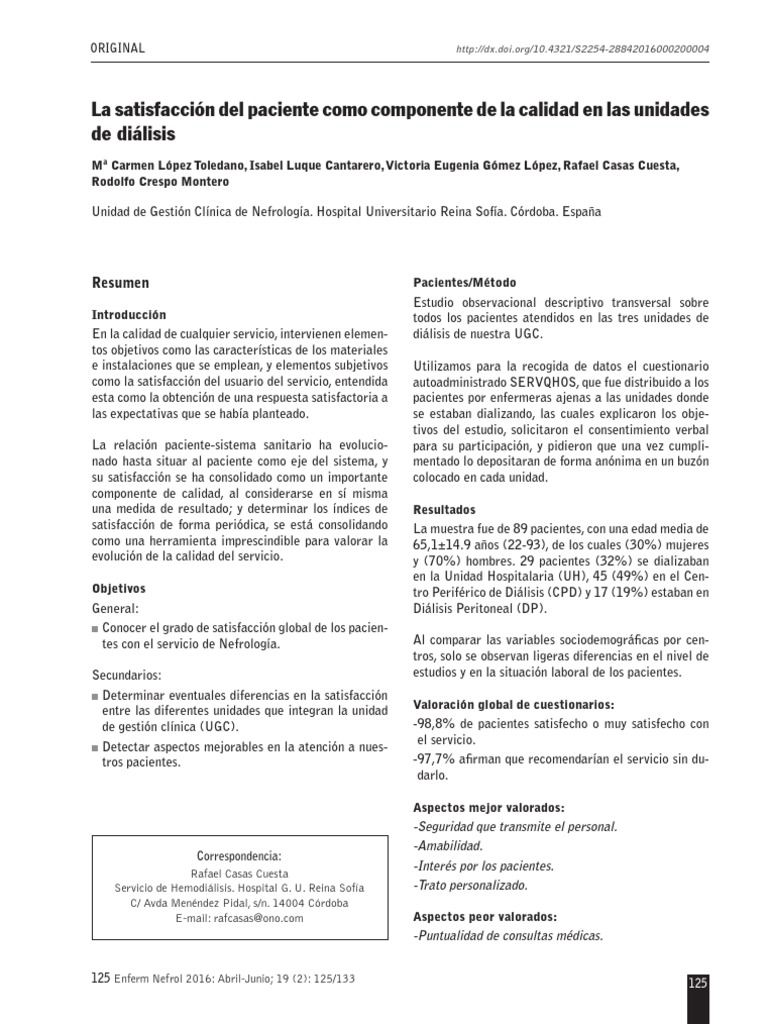 ción de la calidad percibida en empresas de servicios. 29 pacientes (32%) se dializaban en la UH, 45 (49%)