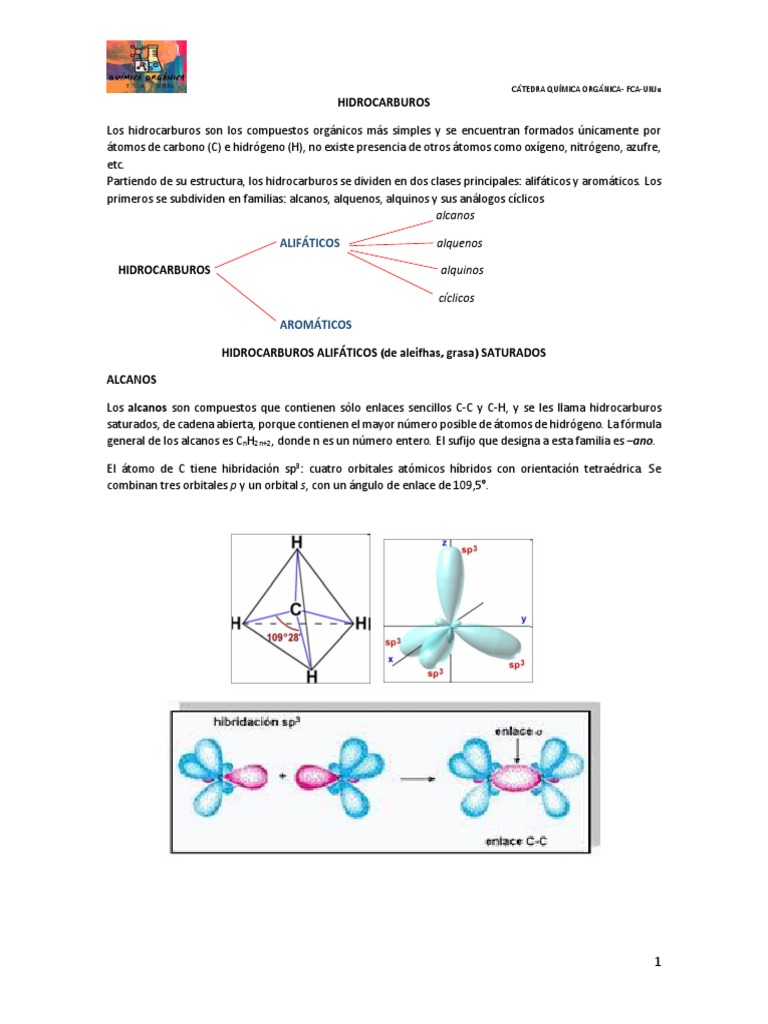 primeros se subdividen en familias: alcanos, alquenos, alquinos y sus análogos cíclicos