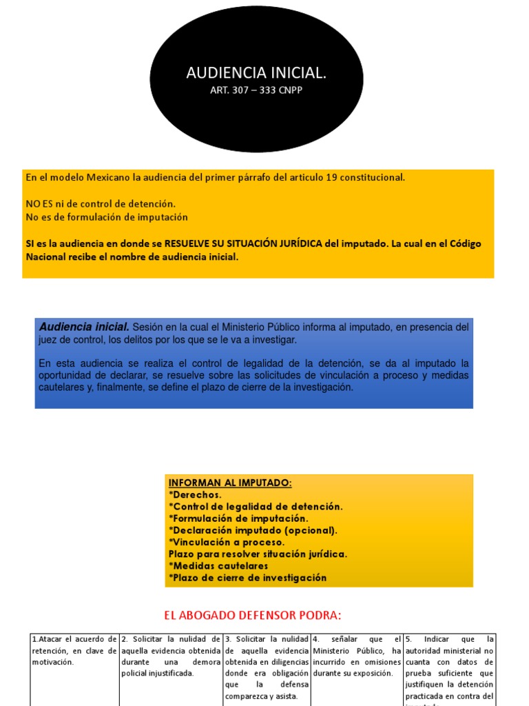 Audiencia inicial. Sesión en la cual el Ministerio Público informa al imputado, en presencia del