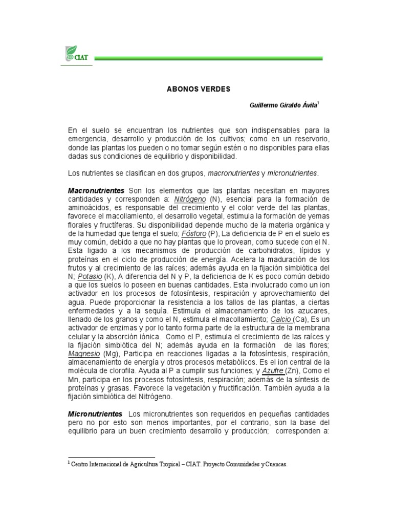 estabilidad estructural de los agregados del suelo. El uso de los abonos verdes