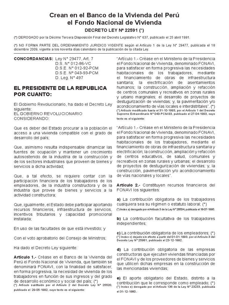 D.S. N° 012-86-VC el Fondo Nacional de Vivienda, denominado FONAVI,