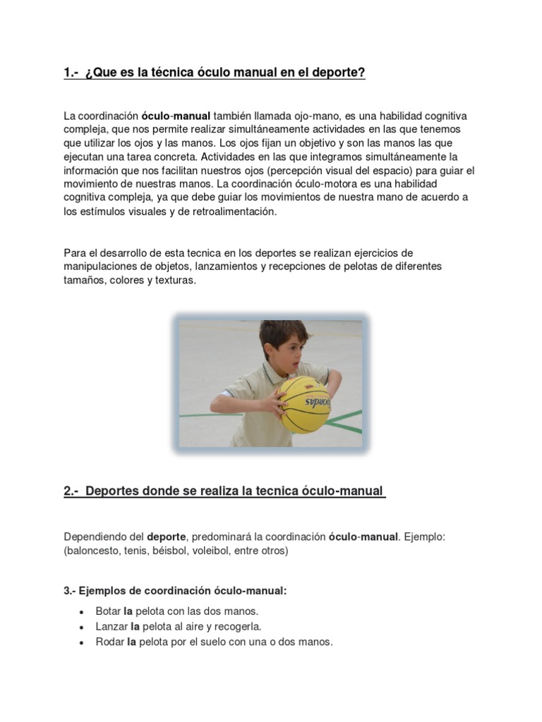 1.- ¿Que es la técnica óculo manual en el deporte?