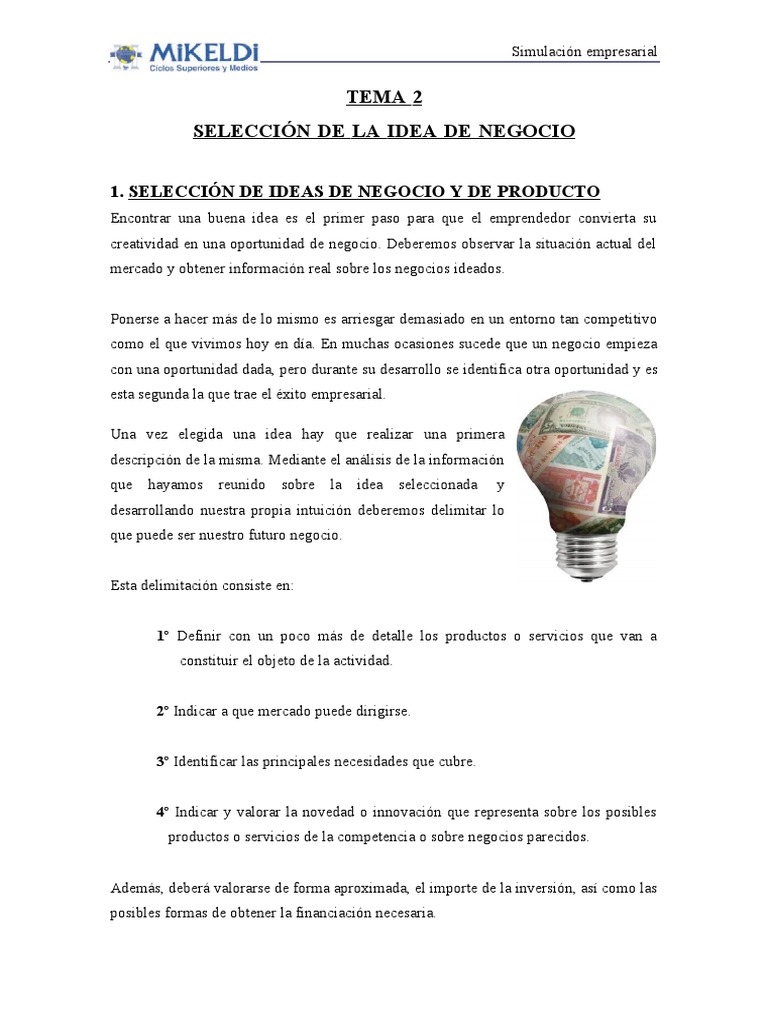 1. SELECCIÓN DE IDEAS DE NEGOCIO Y DE PRODUCTO