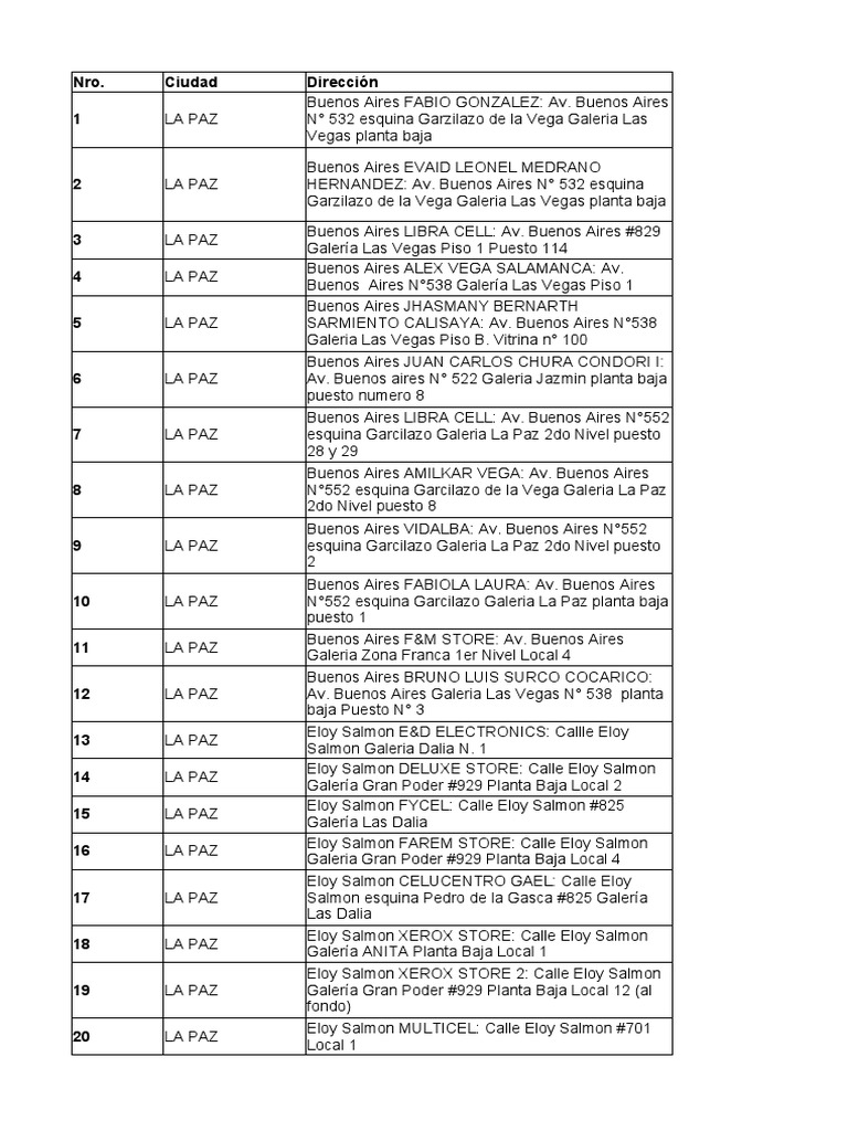 28 LA PAZ Uyustus CELUMUNDO : Calle Uyustus # 982