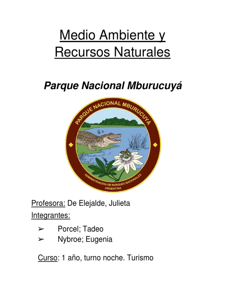 características e historia del parque nacional MBURUCUYA que queda ubicado en