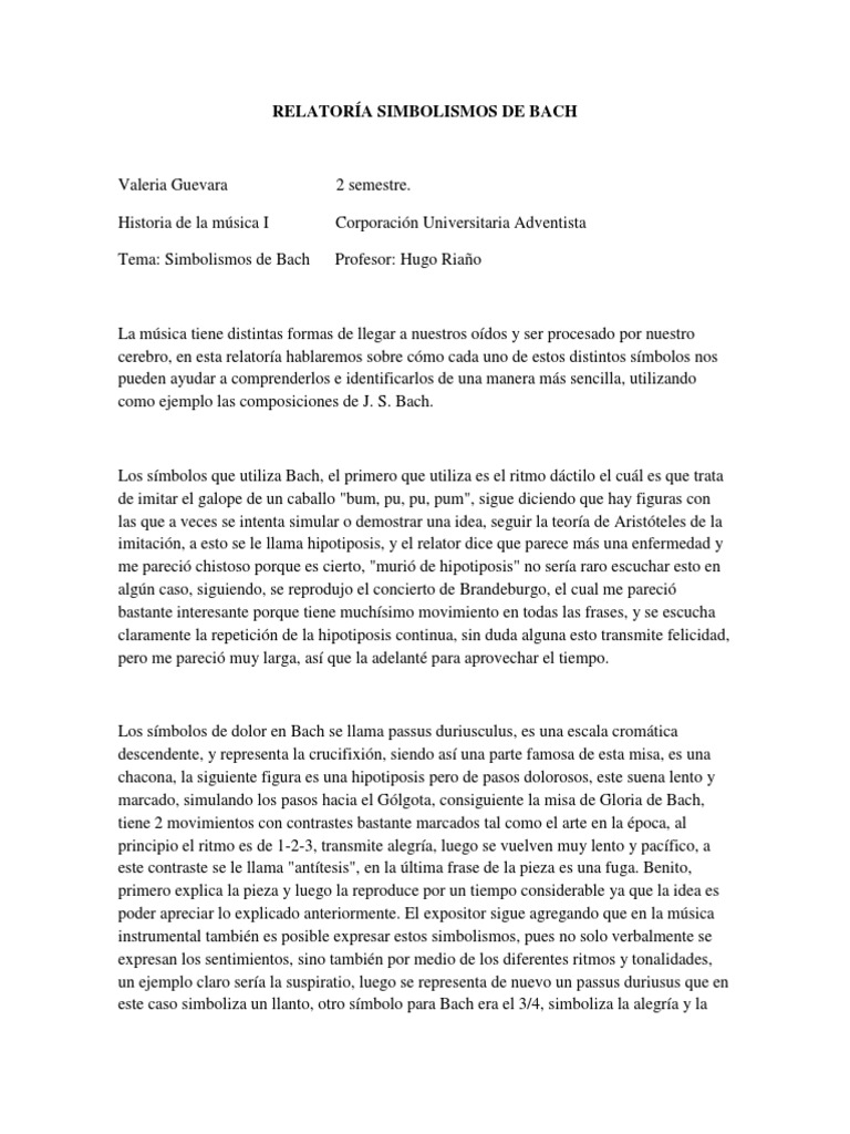 Tema: Simbolismos de Bach Profesor: Hugo Riaño