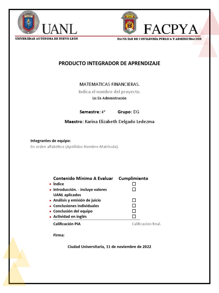 amortizaciones. Además, en dicho producto integrador de aprendizaje se pondrá