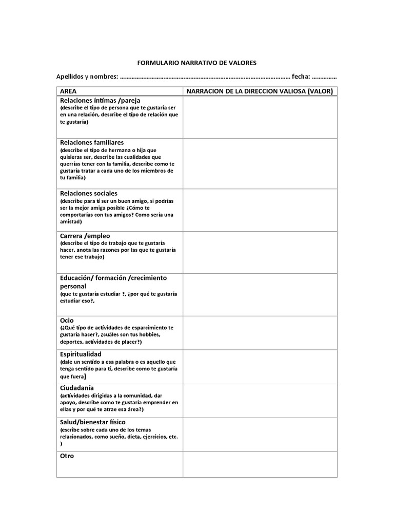 FORMULARIO NARRATIVO DE VALORES