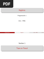 Un registro se declara identificando al tipo como un registro (t_registro=registro) y luego especificando el nombre y tipo