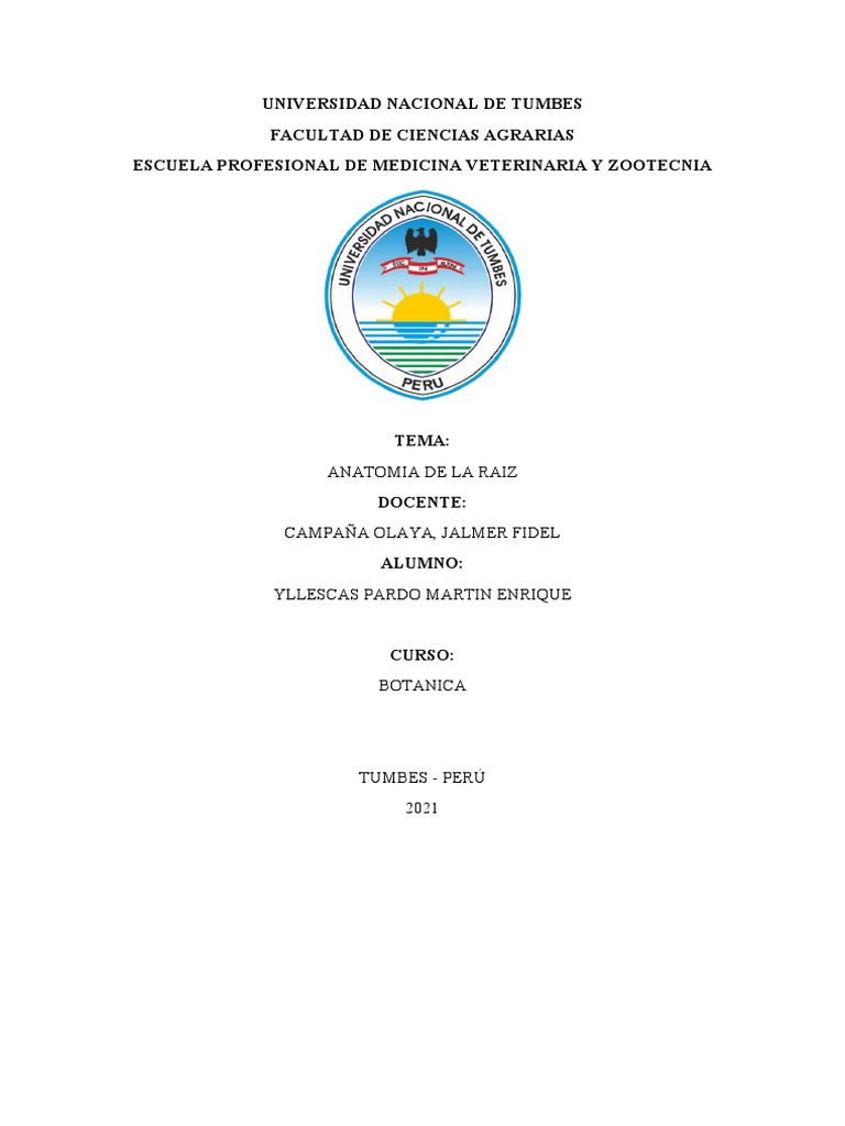 Dar a conocer de forma breve y precisa sobre la anatomía de la raíz.