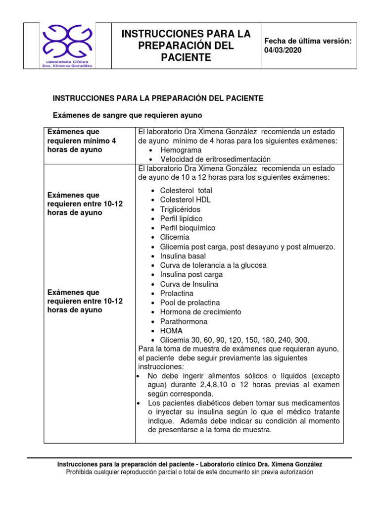 Instrucciones para la preparación del paciente - Laboratorio clínico Dra. Ximena González