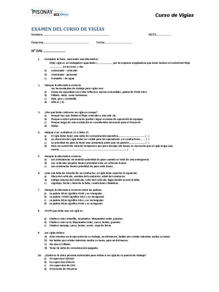 EXAMEN DEL CURSO DE VIGÍAS