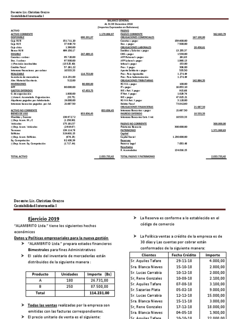 Producto Unidades Importe (Bs) Sr. Lucas Carrabia 10-12-18 2.000,00
