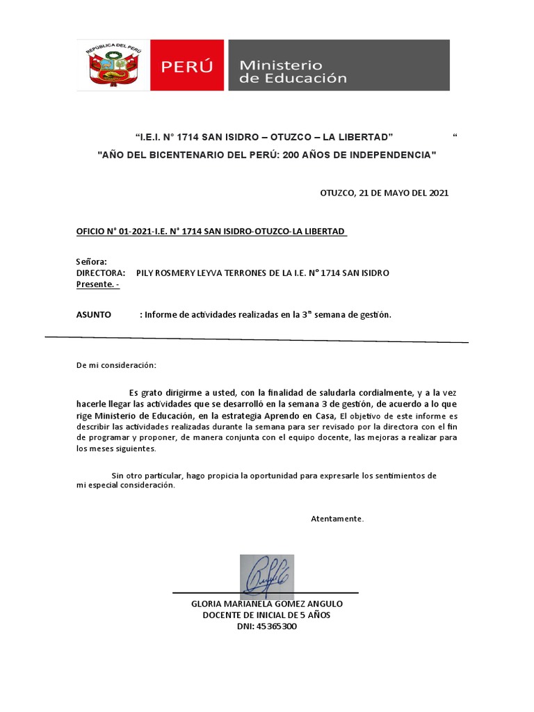 OFICIO N° 01-2021-I.E. N° 1714 SAN ISIDRO-OTUZCO-LA LIBERTAD
