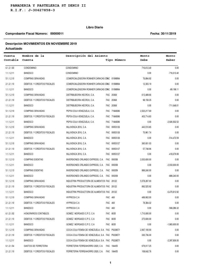1.1.1.2.11 BANESCO COCA-COLA FEMSA DE VENEZUELA, S.A. FAC P0239103 0.00 -4,677,700.00