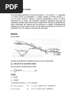 Un canal trapezoidal tiene un ancho de solera de 0.80 m y un talud 1. En cierta sección de su perfil