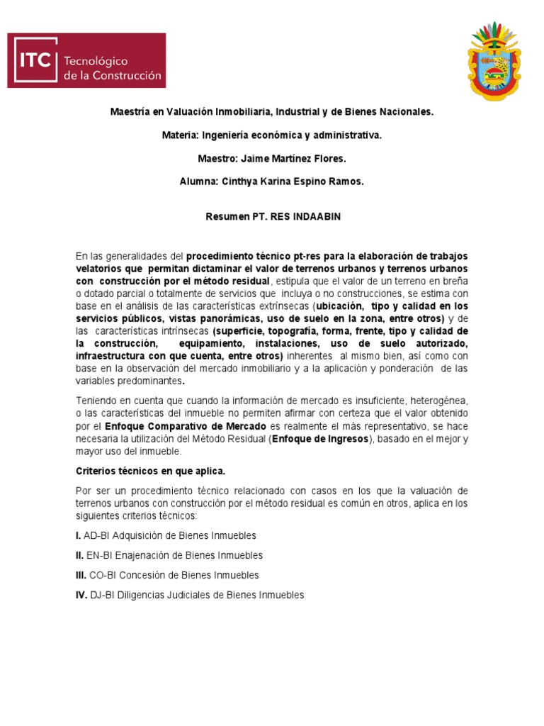 terrenos urbanos con construcción por el método residual es común en otros, aplica en los