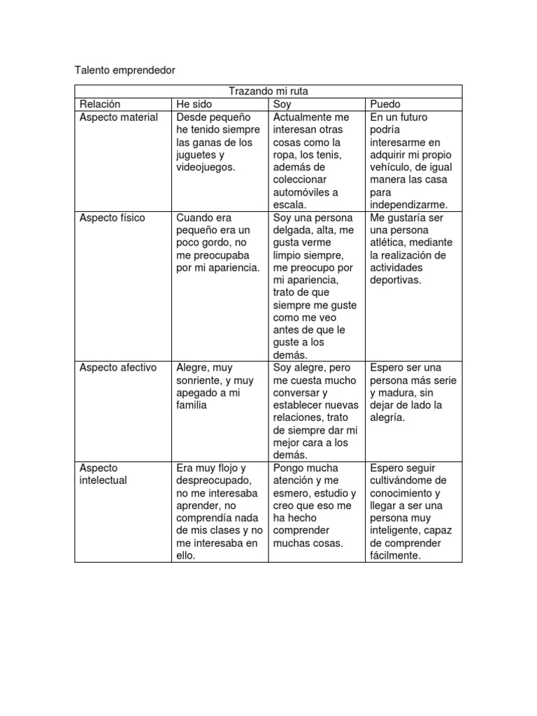 Aspecto físico Cuando era Soy una persona Me gustaría ser