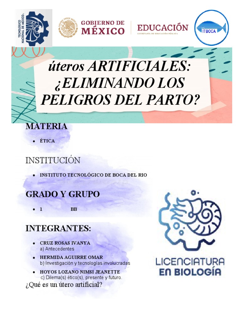 caso de los humanos, esto se lleva a cabo en un útero artificial fuera del cuerpo humano hasta el
