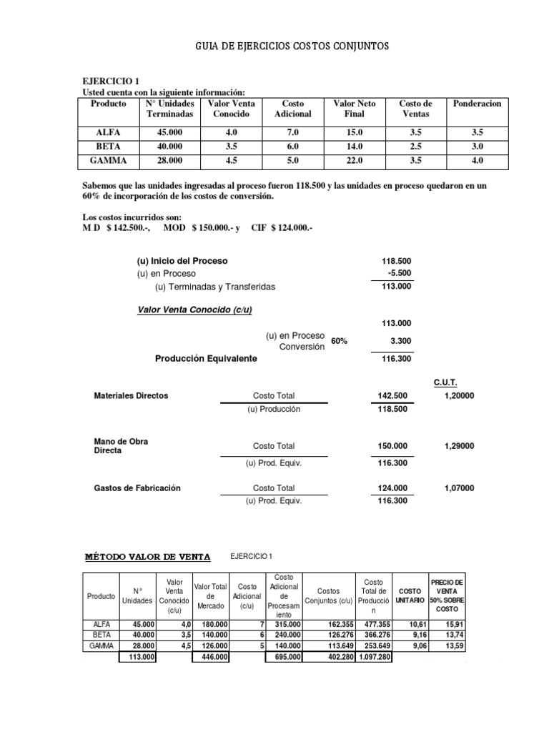 GUIA DE EJERCICIOS COSTOS CONJUNTOS
