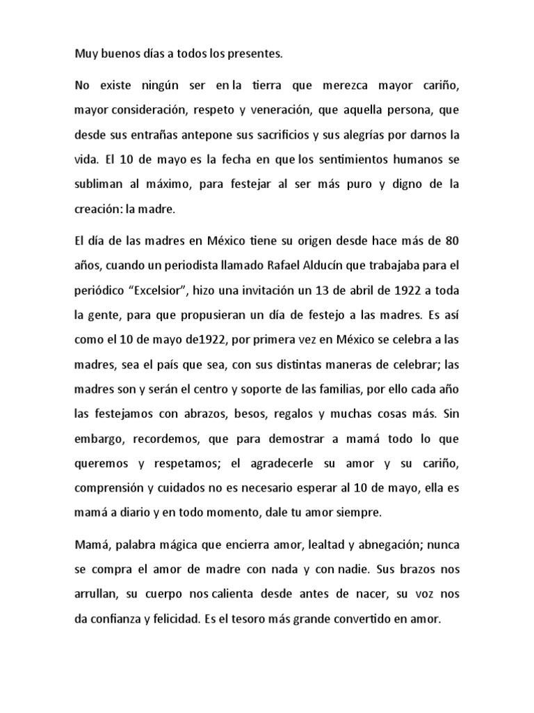 madres, sino por el reconocimiento ante su gran labor durante todas las
