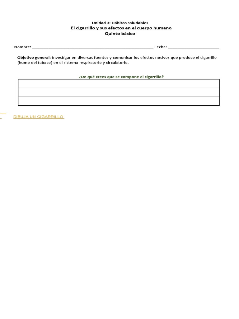 Objetivo general: Investigar en diversas fuentes y comunicar los efectos nocivos que produce el cigarrillo