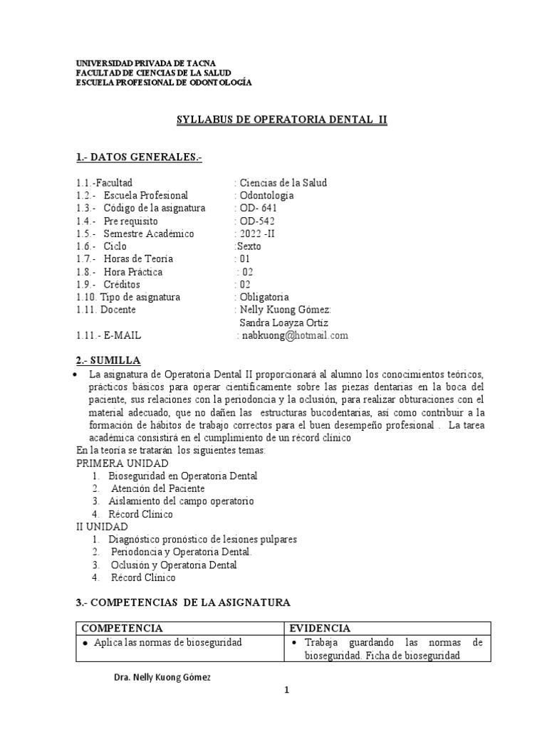 La asignatura de Operatoria Dental II proporcionará al alumno los conocimientos teóricos,