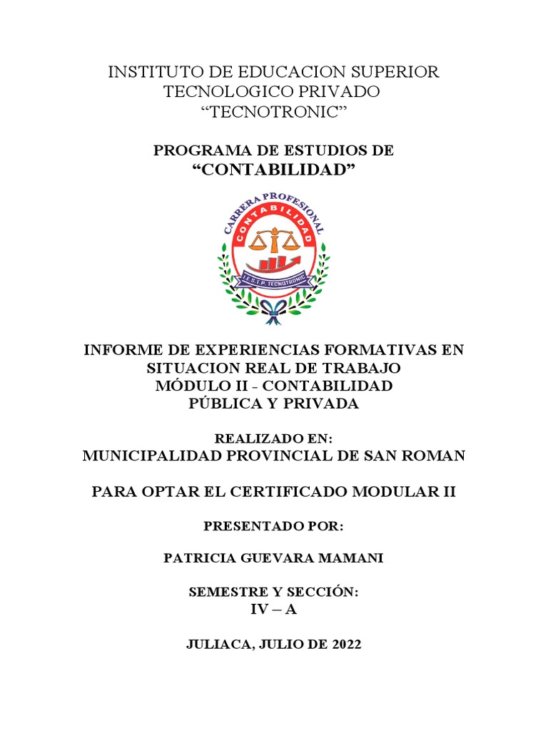 El presente informe da a conocer los detalles de mis experiencias formativas