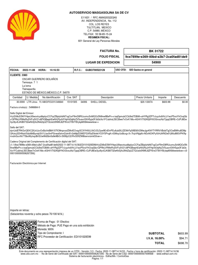 FECHA: 2022-11-08 HORA: [Link] R.F.C.: GUBO700522129 USO CFDI: G03 Gastos en general