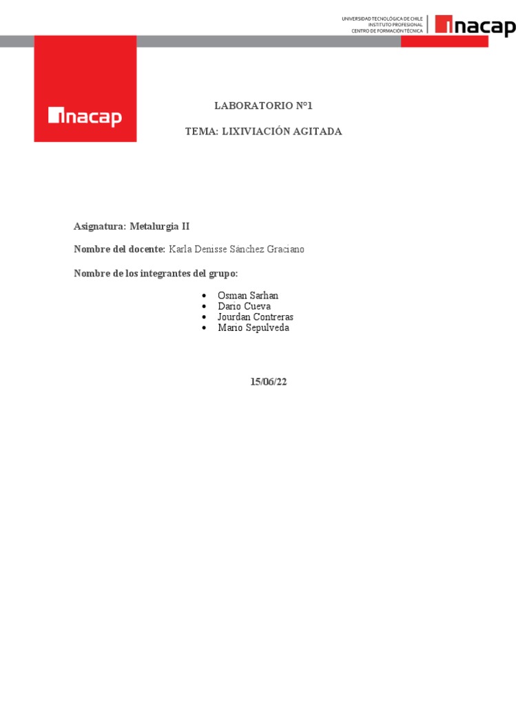 de lixiviación agitada, en donde cada grupo pude identificar mediante resultados obtenidos al