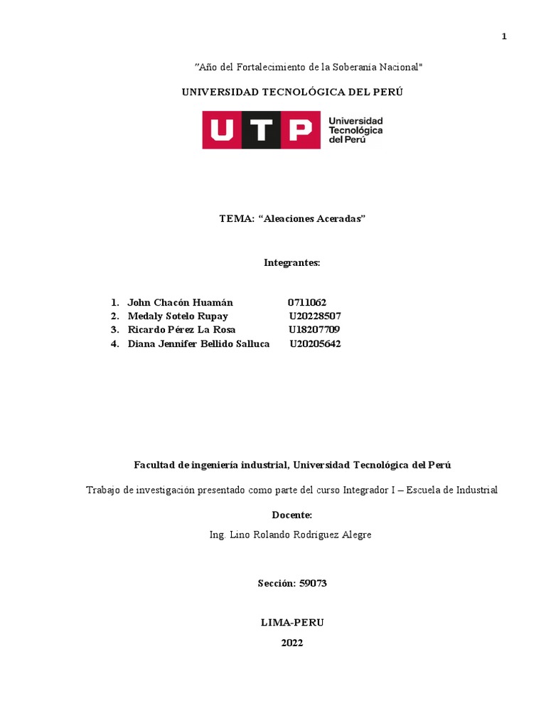 Trabajo de investigación presentado como parte del curso Integrador I – Escuela de Industrial