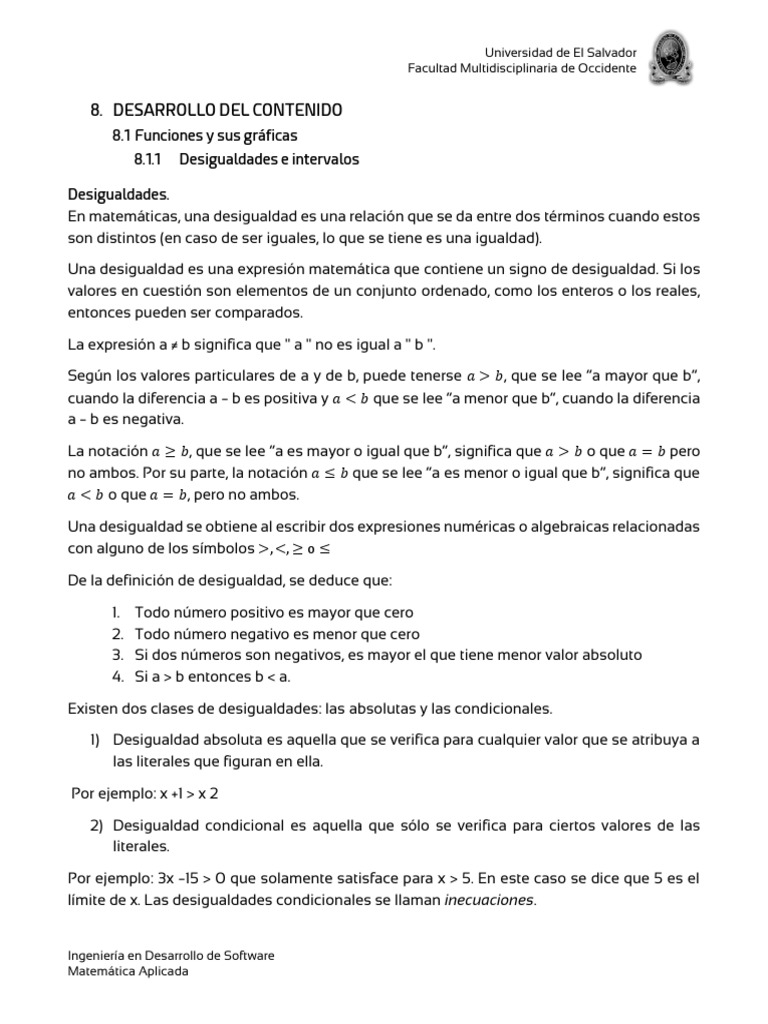 2) Desigualdad condicional es aquella que sólo se verifica para ciertos valores de las