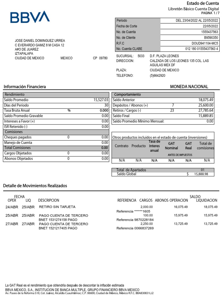 25/ABR 25/ABR PAGO CUENTA DE TERCERO 100.00 15,975.49 15,975.49