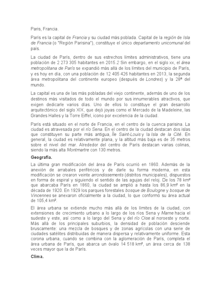 París es la capital de Francia y su ciudad más poblada. Capital de la región de Isla