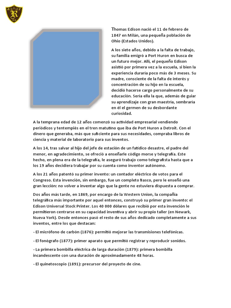 un futuro mejor. Allí, el pequeño Edison