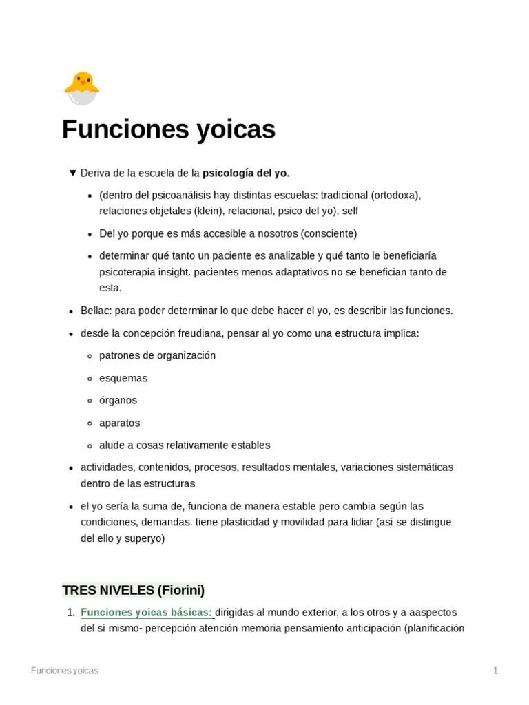 1. Funciones yoicas básicas: dirigidas al mundo exterior, a los otros y a aaspectos