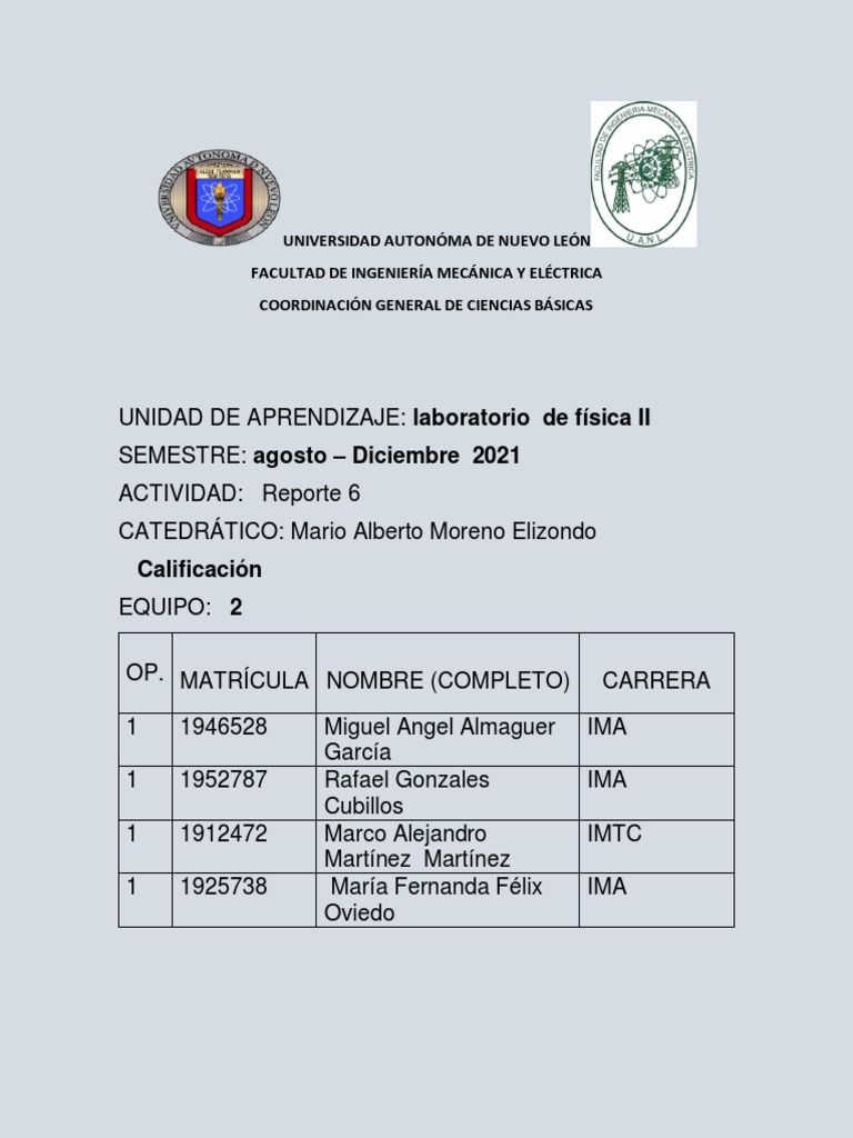 UNIDAD DE APRENDIZAJE: laboratorio de física II