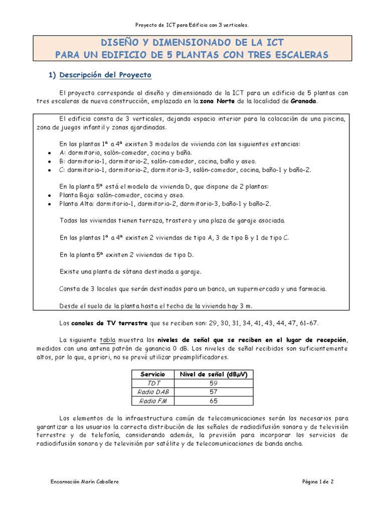 El proyecto corresponde al diseño y dimensionado de la ICT para un edificio de 5 plantas con