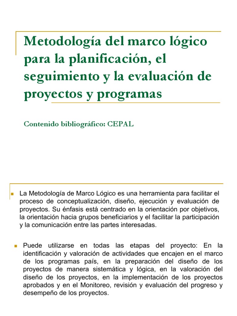 n La Metodología de Marco Lógico es una herramienta para facilitar el