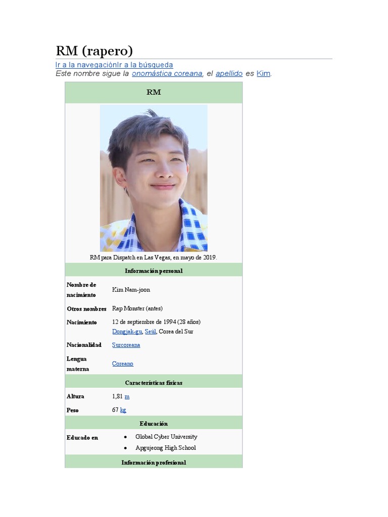 Otros nombres Rap Monster (antes)