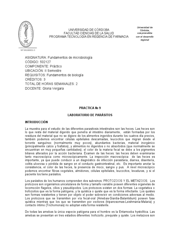 importante, ya que puede conducir a un diagnóstico de infección parasitaria, diarrea, disentería,