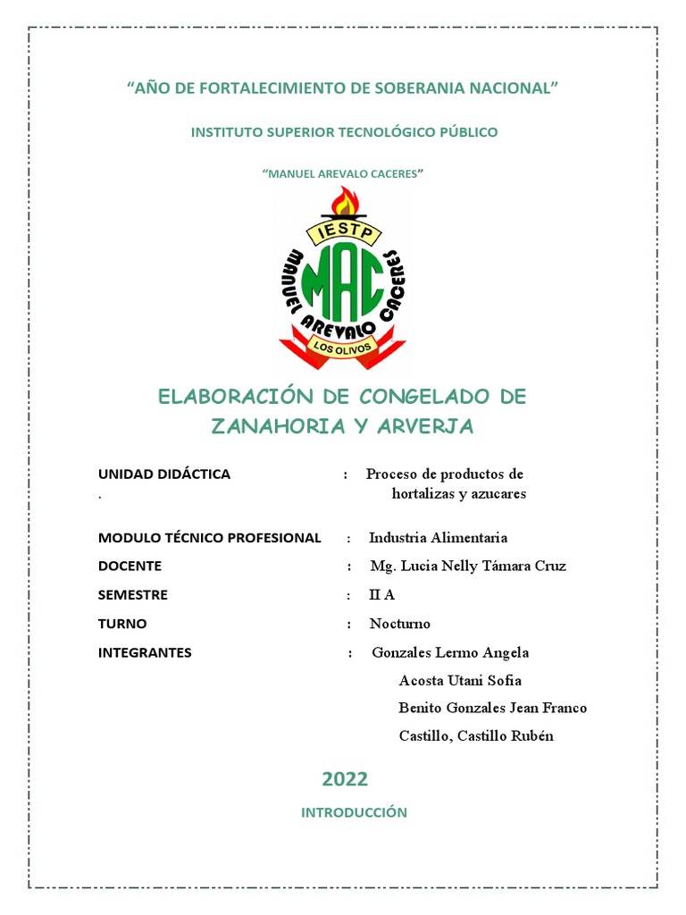 Elaborar productos de hortalizas congeladas (zanahoria – alverja) empleando las