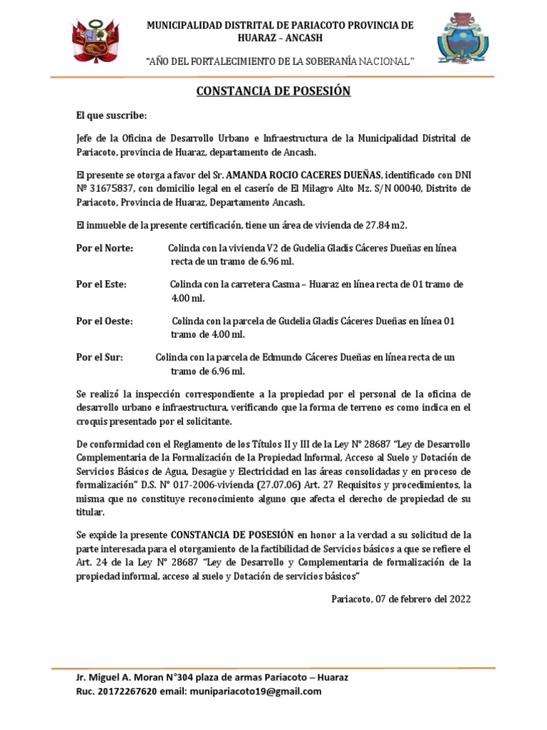 CONSTANCIA DE POSESIÓN