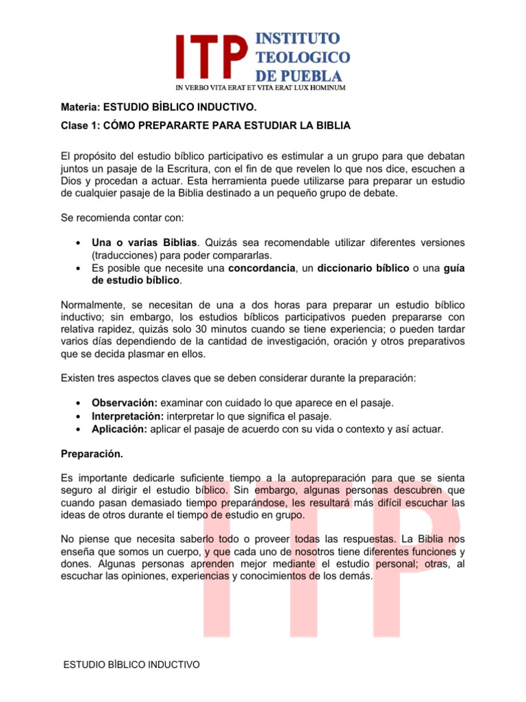 Materia: ESTUDIO BÍBLICO INDUCTIVO.