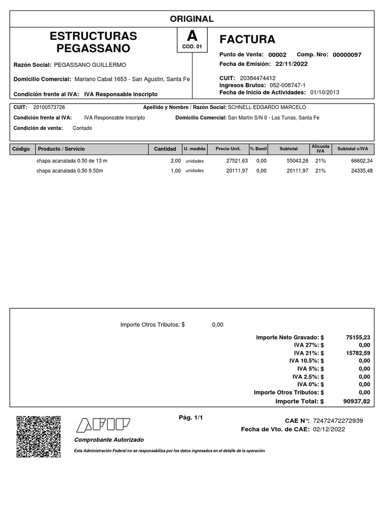 Punto de Venta: 00002 Comp. Nro: 00000097