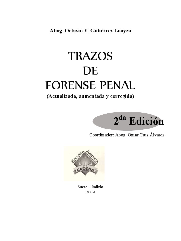 Trazos de Forense Penal, con la sugerencia de su título, se presenta con las siguientes