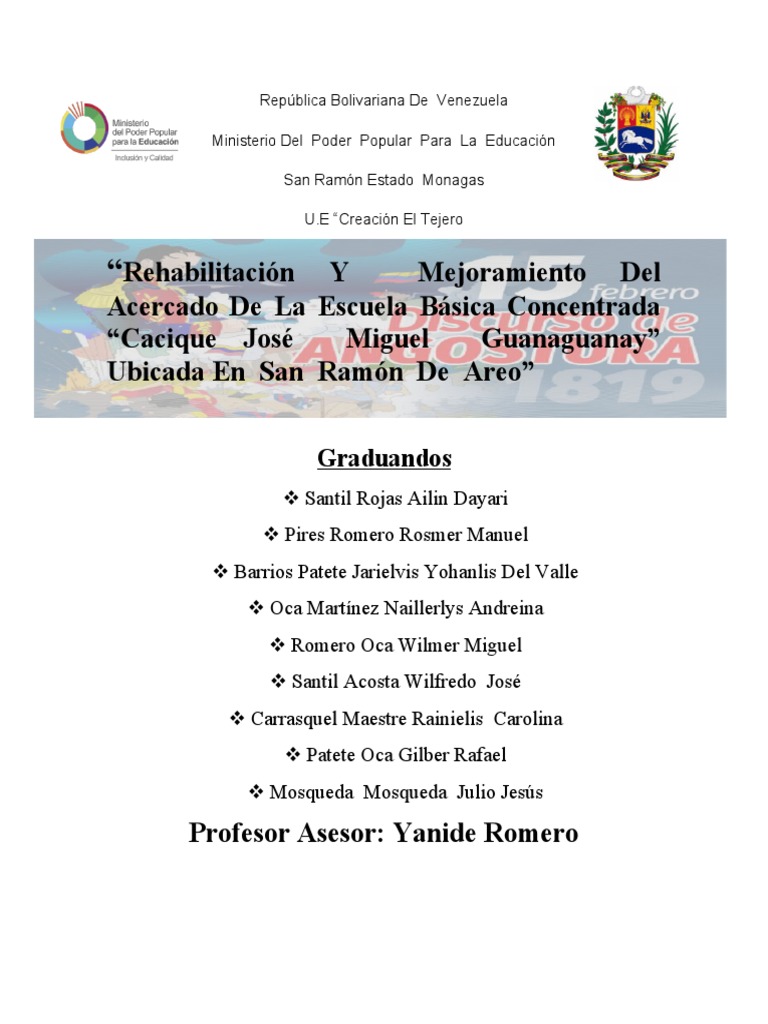 Escuela básica concentrada “Cacique José Miguel Guanaguanay”, y U.E.