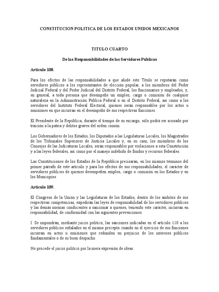 los servidores públicos a que hace referencia el párrafo primero del artículo 111 cometa un